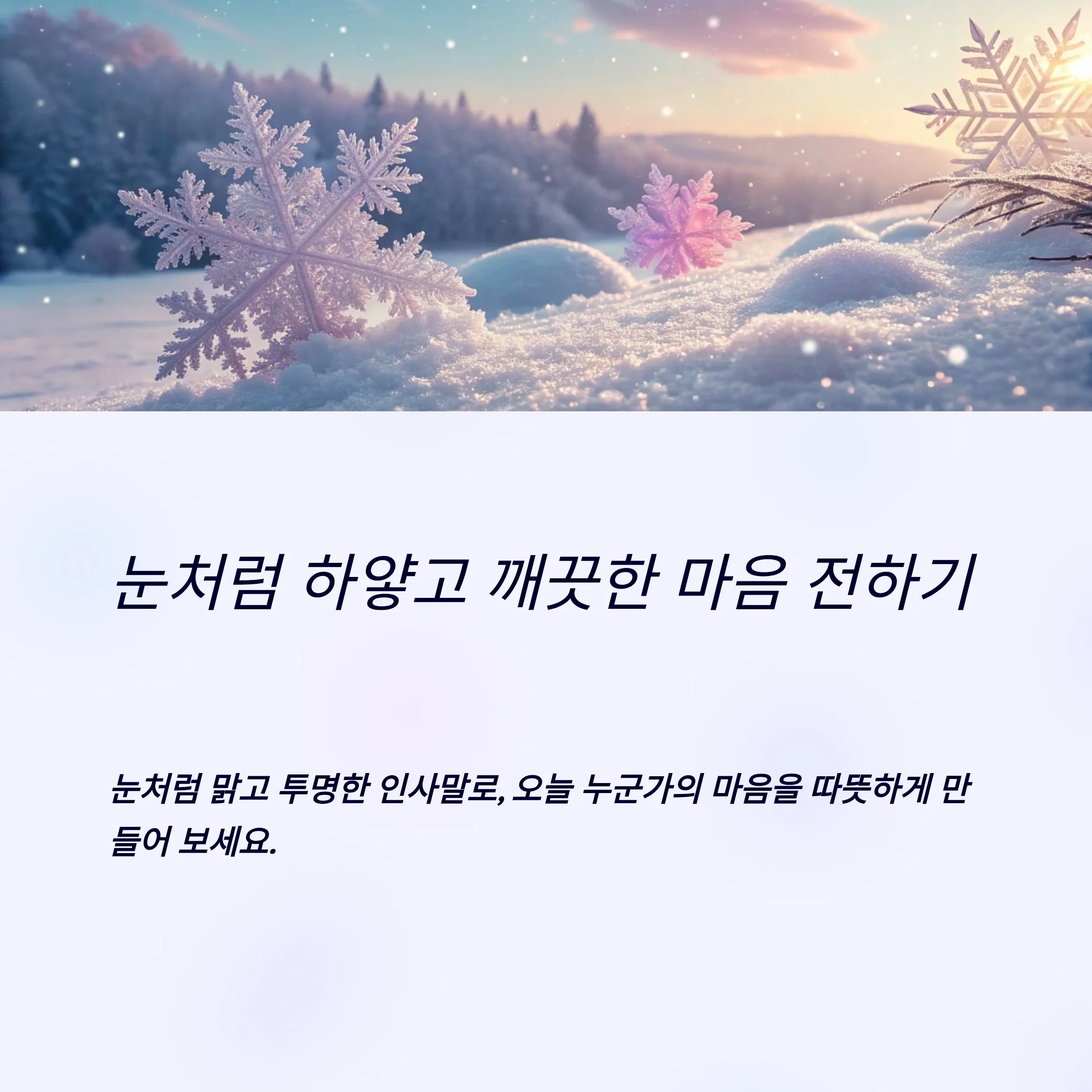 "작은 눈이 내려 마음을 감싸듯, 오늘도 당신 곁에 따뜻함이 머물기를." 이라는 인사로 진심을 전해보세요.